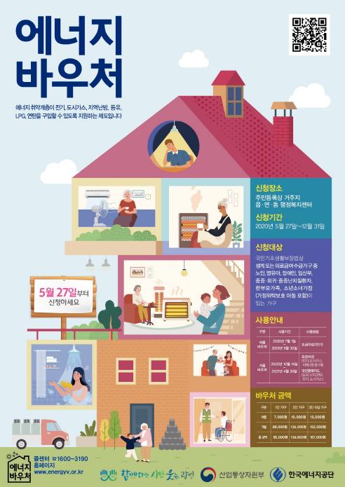 2019년 에너지바우처는 2833가구에 316백만원을 지원하였으며, 올해 바우처 지원금액은 가구원 수를 고려하여 1인 가구(여름 바우처 7,000원, 겨울 바우처 88,000원), 2인 가구(여름 바우처 10,000원, 겨울 바우처 124,000원), 3인 이상 가구(여름 바우처 15,000원, 겨울 바우처 152,000원)로 차등 지원된다.
