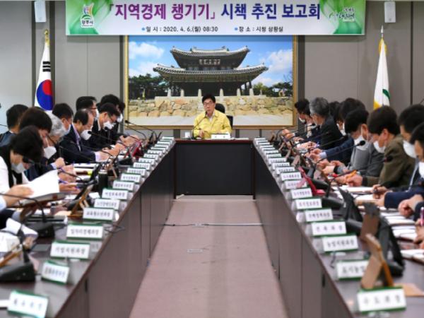 이날 보고회는 코로나19 확산에 따른 경기 침체로 어려움을 겪는 소상공인 등 지역경제 활성화 방안을 논의하기 위해 마련했으며 시민이 체감할 수 있는 지역경제 활성화 시책 발굴과 다각적인 공직자의 실천 활동을 논의했다.