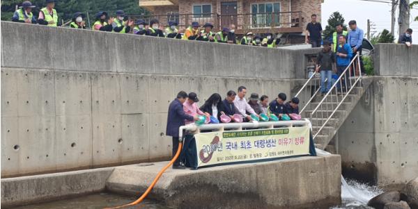 강원도 내수면자원센터와 철원군은 한반도 고유어종인 미유기를 보호하고, 어족자원을 증식하기 위해 지난 5. 22일 근남면 잠곡천에서 미유기 2만여마리(국내 최초 대량생산 기술개발 성공)를 방류했다고 25일 밝혔다.