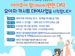 대전 대덕구(구청장 박정현)가 25일부터 저출산 위기 속 영유아가정의 양육부담을 경감하고 아이 낳고 기르기 좋은 환경을 조성하기 위한 시책으로 ‘아이조아 맘(mom)편한 대덕, 유아차ㆍ카시트 대여사업’을 추진한다.