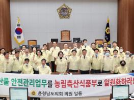 충남도의회(의장 유병국)는 25일 제320회 임시회 2차 본회의에서 ‘축산물 안전관리 업무의 농림축산식품부 일원화 촉구’ 건의안을 채택했다.