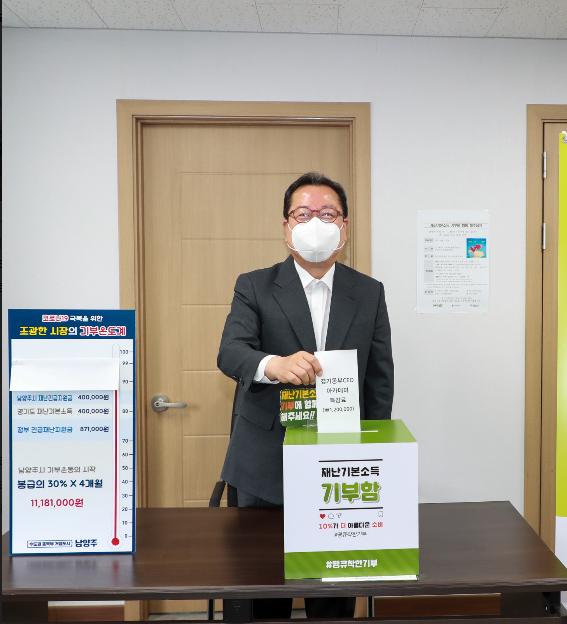 기부 끝판왕으로 소문 난 조광한 남양주시장이 월급 30% 4개월분과 정부, 도, 시 재난지원금 전액 기부에 이어 특강을 통해 받은 사례금까지 기부해 화제다.