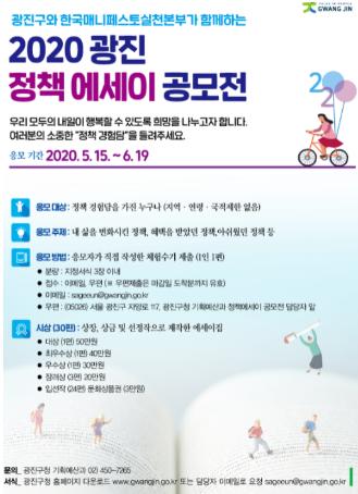 광진구(구청장 김선갑)가 한국매니페스토실천본부(사무총장 이광재)와 함께 전국민 대상 정책에세이 공모전을 개최한다.