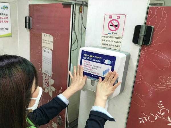 12개 부서 30명의 점검반이 이들 공중화장실을 차례로 찾아가 손 소독제와 손 세정제 비치 여부, 방역 시행 여부를 살핀다.