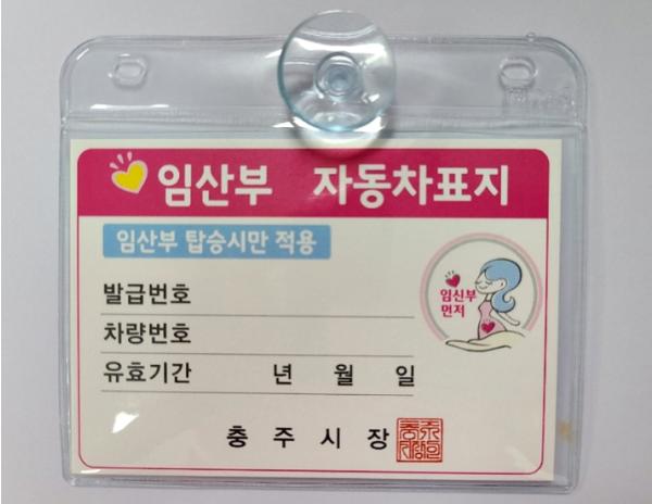 임산부 자동차 표지는 충주시에 주민등록이 된 임산부가 임신(산)부 신분증, 임신확인서 또는 산모수첩, 차량등록증, 주민등록등본을 지참해 충주시 보건소 1층 모자보건실을 방문해 신청하면 발급 받을 수 있다.