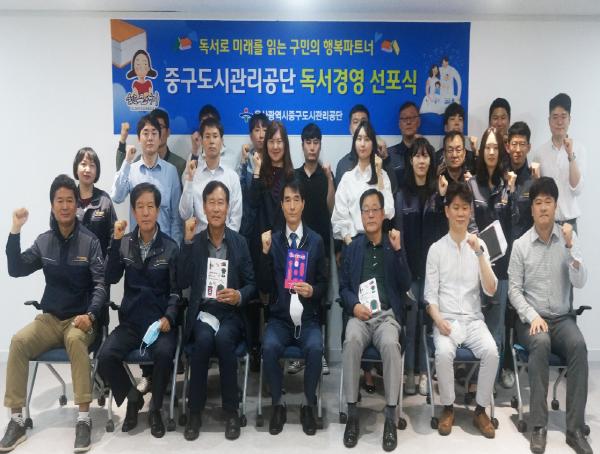 울산 중구도시관리공단(이사장 최영달)은 25일 오전 10시 공단 대회의실에서 전 직원이 참석한 가운데 조직 경쟁력 강화와 직원 복리 증진을 위한 ‘독서경영 선포식’을 가졌다.