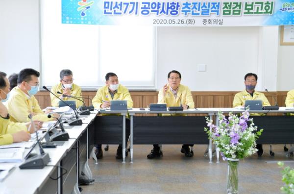 울진군(군수 전찬걸)은 지난 26일 군청 중회의실에서 민선7기 공약사항 추진실적 점검 보고회를 가졌다.