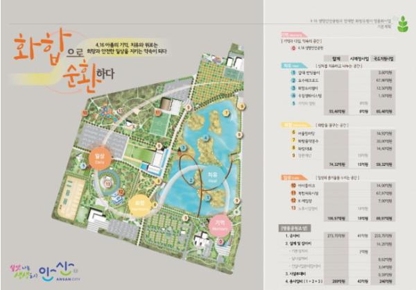 4·16생명안전공원과 연계된 화랑유원지 명품화 리모델링 사업은 당초 계획에는 없었으나 민선7기 들어 윤화섭 시장과 시 공직자들이 지역갈등 해소 및 시 경쟁력 강화를 위해 정부에 1년 가까이 요구하며 얻어낸 결과다.