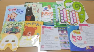 2차 개학 연기가 발표된 3월 23일에는 각 연령별로 그림책 2권과 함께 그림책 내용과 관련된 활동자료(만들기, 그리기, 연계 활동지 등)들을 우편으로 보내 가정에서 유아들이 소포를 받아 보는 경험과 함께 부모님과 즐겁게 놀이하며 더 깊은 애착관계를 형성할 수 있도록 하였으며