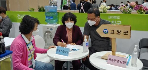 전북 고창군이 지난 22일부터 3일간 서울시 양재동 aT센터에서 열린 ‘귀농귀촌 청년창업 박람회’에 참가해 도시민을 대상으로 귀농귀촌 홍보에 나섰다.