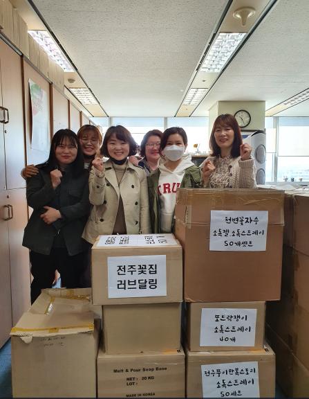 이 사업은 공동체 회원들이 쿠키, 빵, 수제청 등 먹거리와 김치 등 밑반찬, 샴푸나 비누 등 생필품을 직접 만든 뒤 3~5개씩 소포장해 취약계층이 다수 거주하는 지역에 무인 기부 나눔터를 설치한 것으로 취약계층이 자유롭게 나눠 가졌다.