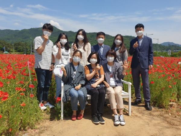 농업기술센터 농촌지도과 직원들은 지난 26일 점심시간에 김천 혁신도시 KTX역 부근(율곡동 소재) 유휴지에 조성된 꽃양귀비 대형 꽃밭에서 꽃구경과 사진 촬영으로 힐링의 시간을 보냈다.