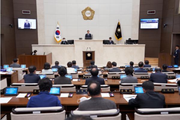 이건한 의장은 개회사를 통해 “코로나19 감염병 확산으로 경제 생태계가 멈춰 서고 시민의 삶이 어려움을 겪고 있으며, 이런 엄중한 상황에서도 각계각층에서 성금 기탁과 자원봉사 등을 통해 이 위기를 극복할 수 있는 원동력을 마련하고 있다”고 말했다.