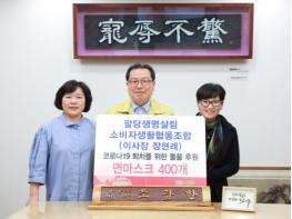 팔당생명살림 소비자생활협동조합(이사장 장현례)은 6일 코로나19 극복을 위한 마스크 400매를 남양주시 경기사회복지공동모금회에 전달했다.