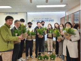 재단 임직원은 졸업식과 입학식 등의 취소로 상황이 어려워진 화훼농가를 위해 꽃바구니 50여 개와 딸기 농가의 소비촉진을 위해 직거래로 딸기 100박스를 구입했다.