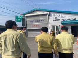 우선, 갈말읍에 위치한 거점소독시설을 방문하여 방역점검과 함께 근무자들을 격려한 후, 국내 발생 초기부터 6개월 이상 강원도 방역의 최전선에서 총력을 다 하고 있는 철원군 방역 공무원들의 노고를 격려하고 철저한 방역을 당부했다.