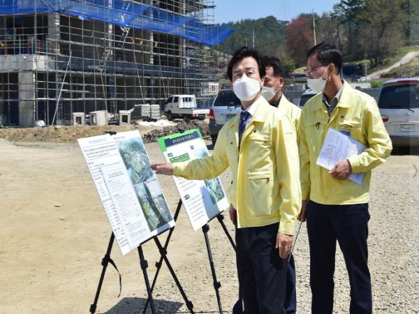 조규일 진주시장은 6일 오전 지역농업 발전 및 농업기술 보급의 중추적인 기관이 될 것으로 기대되는 진주시 농업기술센터 신축사업 현장을 방문해 공사 진행상황, 안전사고 및 코로나19 확산 방지대책 등을 점검하고 관계자들을 격려했다.