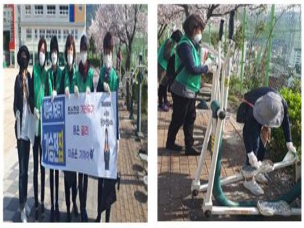 연제구 연산6동(동장 박성희)은 지난 3일 통장협의회(회장 이경숙)와 새마을문고(회장 홍윤희) 주관으로 부산시의 ‘Safety Zone 만들기’ 전개에 따라 코로나19 확산을 막기 위해 주민들이 이용하는 정자, 벤치, 체육시설물, 도로시설물 등에 대한 대대적인 집중 방역을 실시했다.