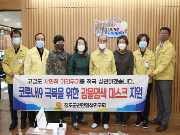 청도군천연염색연구회(회장 이명숙)는 장기화되고 있는 코로나19에 고강도 사회적 거리두기 실천을 위해 4월3일(금) 청도군 재난안전대책본부에 감물염색 마스크 700장을 기증하였다.