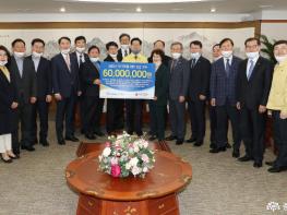 도는 7일 도청 접견실에서 코로나19 성금 전달식을 열고, 도 산하 공공기관장들로부터 성금 6000만 원을 전달 받았다.