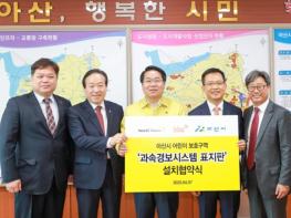 이번 협약은 아산시 어린이보호구역 내에 1억원 상당의 과속경보시스템 표지판 10개소를 설치하는 것을 주요 골자로 한다.