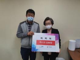 또한 코로나19로 어려운 분들 위해 써달라며 곳곳에서 마스크 및 손소독제를 기부했다. 파주 에너지서비스 마스크 5,000개, 타이거 컨트리 클럽 마스크 500개, 한국공인중개사협회 파주지회 마스크 2,000개, ㈜씨비피 마스크 5,000개, ㈜물살림 손소독제 320개 등 소중한 방역물품을 기탁했다.
