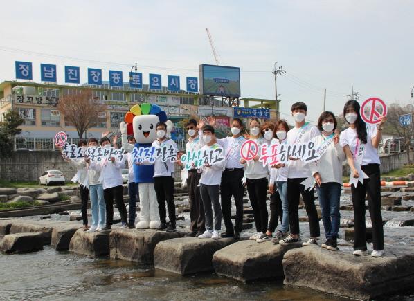 장흥군선거관리위원회는 오는 4월 15일 실시예정인 제21대 국회의원선거를 앞두고 “투표소 철통방역 청정장흥 안심하고 투표하세요” 홍보 캠페인을 장흥토요시장과 탐진강변에서 실시하였다.