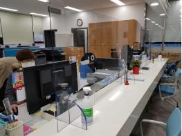 평택시 용이동은 코로나19의 지역사회 감염 예방을 위해 행정복지센터 내 민원창구에 투명 가림막을 설치했다고 8일 밝혔다.