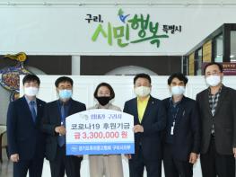 구리시(시장 안승남)는 7일 경기도 옥외광고협회 구리시지부(지부장 한석현)에서 코로나19 차단을 위해 구리시종합사회복지관(관장 이상희)에 후원금 330만원을 전달했다고 밝혔다.