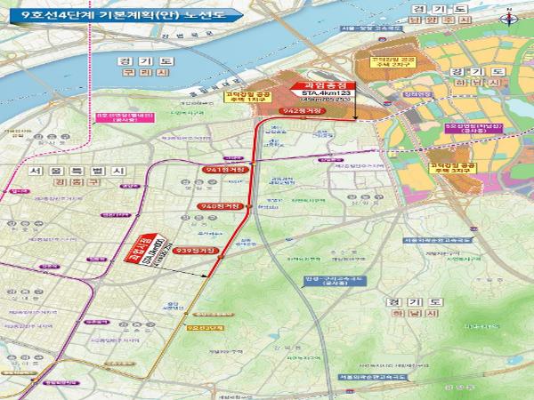 서울시는 지난 3월 기획재정부가 사업비를 확정한데 이어 국토교통부가 도시철도 9호선 4단계 기본계획을 4월 8일(수) 승인함에 따라 도시철도 9호선 4단계 사업을 본격적으로 추진한다고 밝혔다.