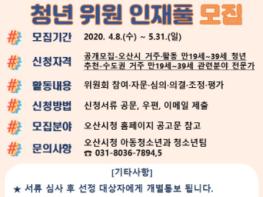 신청 자격은 오산시에 거주하거나 활동하는 만19 ~ 39세 청년으로, 위원회의 특성상 관련분야에 대한 전문학식과 경험이 풍부한 청년을 중점적으로 모집할 계획이다.