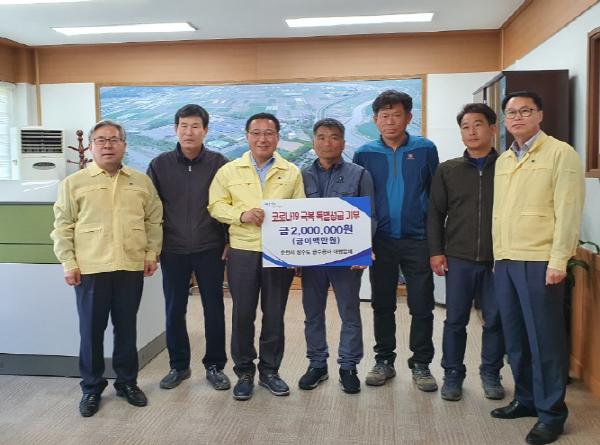 순천시 상수도 급수공사 대행업체 대표들은 순천시를 방문해“코로나19로 많은 시민들이 어려운 시간을 보내고 있는 만큼 필요한 곳에 잘 쓰였으면 좋겠다”며 성금을 전달했다.