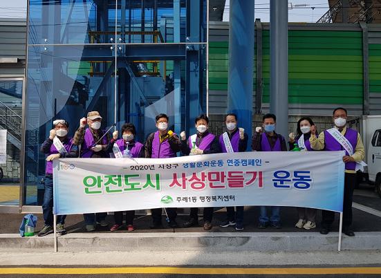 사상구 주례1동 생활문화운동본부, 사회적 거리두기 연장 캠페인 및 방역활동 추진