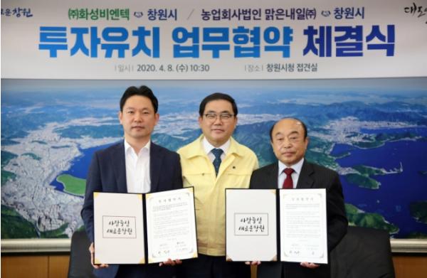 창원시(시장 허성무)는 8일 산업용보일러 제조업체인 ㈜화성비엔텍(대표이사 한기섭), 주류제조업체인 맑은내일㈜(대표이사 박중협) 등 2개 기업과 537억 원 규모의 투자협약(MOU)을 체결했다고 밝혔다.