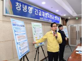 앞서 3월 30일 정부는 전국 소득하위 70%이하 국민에게 긴급재난지원금 100만원(4인 가구 기준)을 지급하기로 결정했고, 4월 7일 경상남도는 중위소득 100% 이하 가구(창녕군 11,646세대)에 가구당 20만원에서 50만원의 긴급재난지원금을 4월중 지급하기로 발표했다.