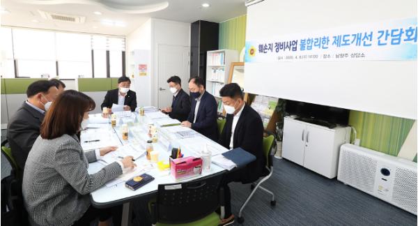 경기도의회 도시환경위원회 소속 이창균 의원(남양주5)은 8일 남양주 상담소에서 ‘훼손지 정비사업 불합리한 제도개선 간담회’를 개최했다.