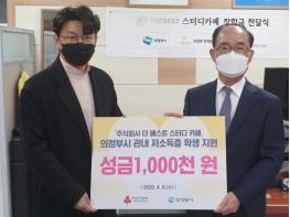 ㈜더베스트 스터디카페(대표 황주하)는 4월 8일 의정부시 관내 저소득층 학생 지원을 위한 성금 100만 원을 기부했다.