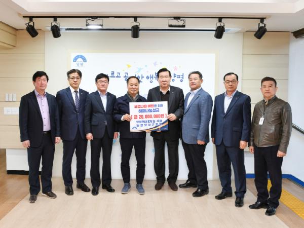 지난 9일 양평관내 8개 농·축협과 농협양평군지부에서 코로나19 예방 성금 2,000만원을 양평군에 전달하였다.