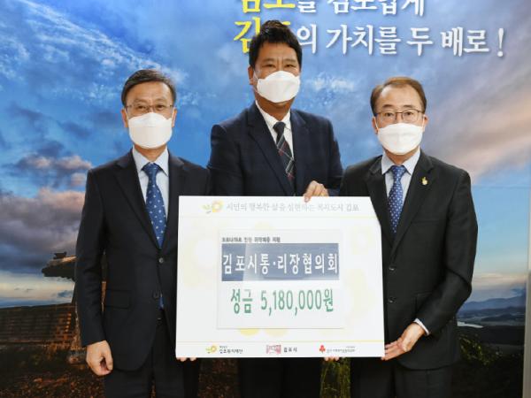 이번 성금기탁은 김포시 관내 518명 모든 통·리장이 십시일반 모금해 김포복지재단에 기탁해 이뤄졌다.