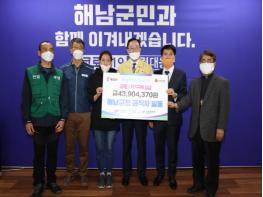 이번 성금 모금은 해남군과 군 소속 3개 노조(전국공무원노조, 해남군청비정규직노조, 전국민주연합노조)가 뜻을 함께해 일반직, 청원경찰, 공무직, 환경미화원을 포함한 1,200여명 전체 공직자들이 참여했다.