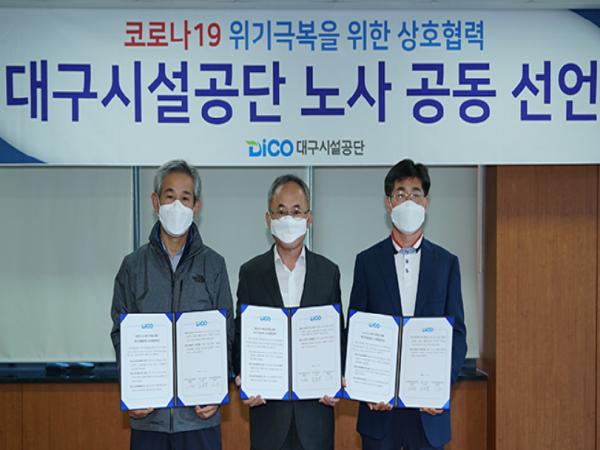 대구시설공단(이사장 김호경) 노사가 한마음 한 뜻으로 코로나19 위기극복을 위해 노력하고 있다.