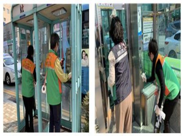연제구 연산6동(동장 박성희)은 지난 9일 코로나19 지역 확산 방지와 예방적 조치 강화를 위한 ‘Safety Zone 연산6동 만들기’를 목표로 연수로, 월드컵대로의 버스 승강 대기시설, 공중전화부스와 같은 교통시설물과 다중이용시설에 집중 방역을 실시했다.