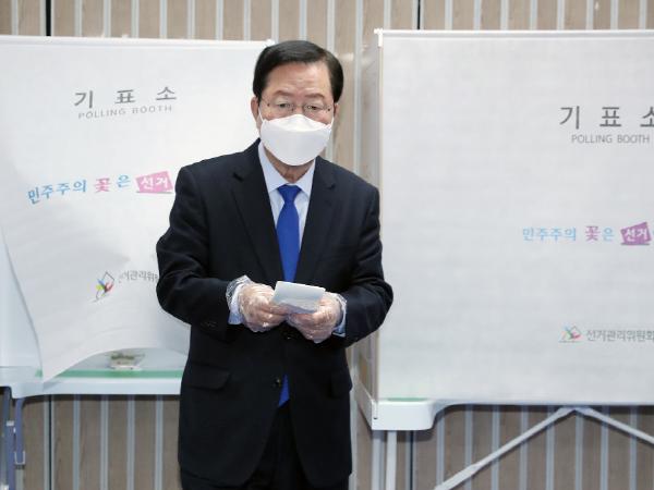 장종태 대전 서구청장은 21대 총선 사전투표 첫날인 10일 오전 8시 서구청 지하에 마련된 둔산2동 투표장에서 소중한 한 표를 행사했다.