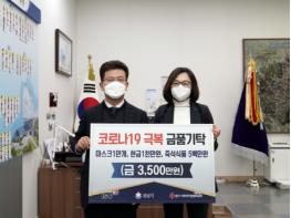 성남시 중원구에 있는 ㈜ISC가 ‘코로나19’ 극복에 힘을 보태고 싶다며 4월 10일 성남시에 마스크 1만개(2000만원), 즉석식품 200인분(500만원), 현금 1000만원을 기탁했다.