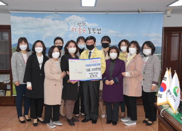 동두천시 어린이집연합회(회장 이유화)는 지난 9일 동두천시청을 방문하여, 코로나19 피해 극복을 위한 성금 250만원을 기부했다.