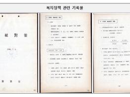 복지정책 관련 기록물은 국민건강보험, 중학교 의무교육, 국민연금 등 복지제도를 시행하기 위한 재원소요 및 대책 등을 포함하고 있어 우리나라 복지제도의 연혁, 정책방향, 상세내용을 살펴볼 수 있다.