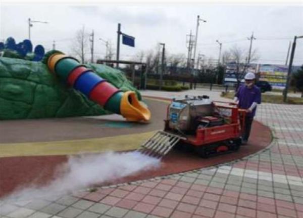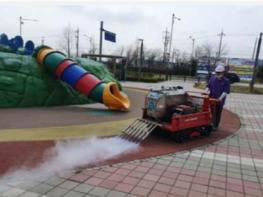 이번 소독은 사회적 거리두기와 초등학교 개학연기 등으로 인해 가족단위의 공원 이용객이 증가함에 따라 어린이들이 안심하고 이용할 수 있는 공원환경 조성을 위해 실시됐으며, 어린이 놀이시설물과 탄성포장재는 살균소독제 도포 후 고압 물 세척과 100℃ 이상의 스팀소독 살균방식으로 이뤄졌다.