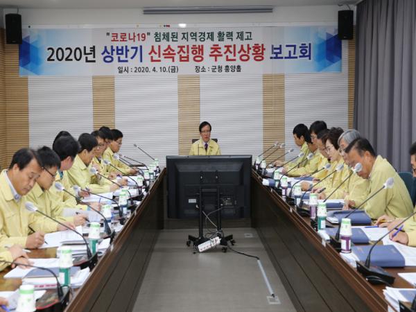 고흥군은 10일 군청 흥양홀에서 부군수를 비롯한 전 부서장이 참석한 가운데 송귀근 군수 주재로 상반기 지방재정 신속집행 추진상황 보고회를 개최했다.