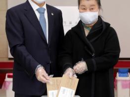 이시종 충북도지사가 10일 오전 8시 부인 김옥신 여사와 함께 처음 충북도청 대회의실에 설치된 사전투표소(사전투표소명: 성안동 사전투표소)에서 도청 직원들과 제21대 국회의원선거 사전투표를 마쳤다.