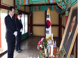 김영록 전라남도지사는 11일 대한민국 임시정부 수립 기념일을 맞아 함평 구봉사를 찾아 독립운동가 일강 김철 선생 영정에 참배했다.